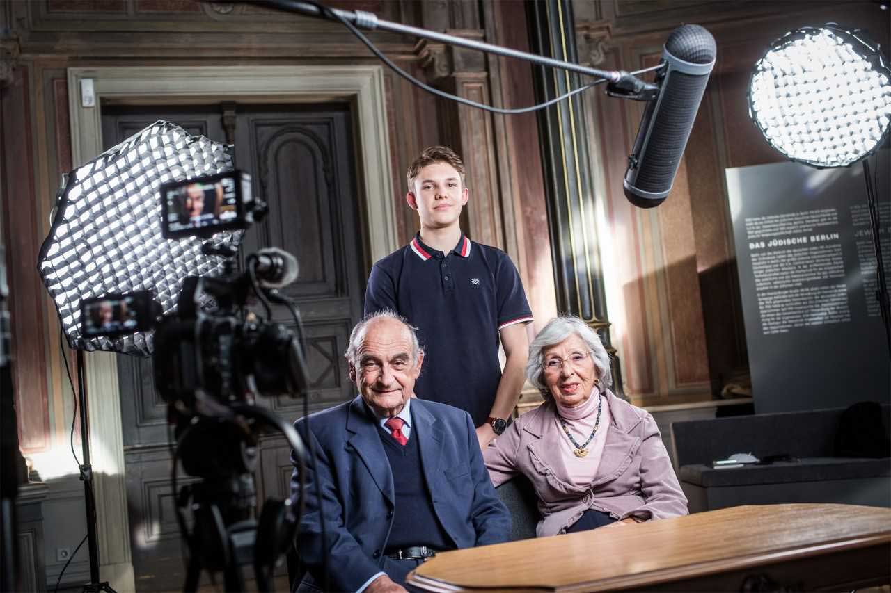 Franz und seine Frau Petra treffen in der Neuen Synagoge Berlin Maximilian – der aus Franz‘ Lebenserinnerungen liest.